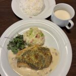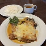 本日のランチ 鶏もも肉のガーリックチーズ焼き はこれ!