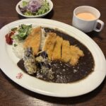 本日のランチ ポークカツとイカ墨黒カレー サラダ付き はこれ!