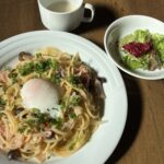 本日のランチ ぺぺたまスパゲティ サラダ付きはこれ!