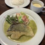 本日のランチ 白身魚のソテー バジルソース はこれ!
