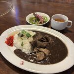 本日のランチ 牛肉とイカ墨黒カレー サラダ付き はこれ!