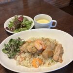 本日のランチ 海老ピラフ バジルチキン添え サラダ付き はこれ!