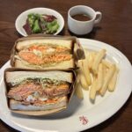 本日のランチ タルタル入りサーモンフライサンド サラダ付き はこれ!