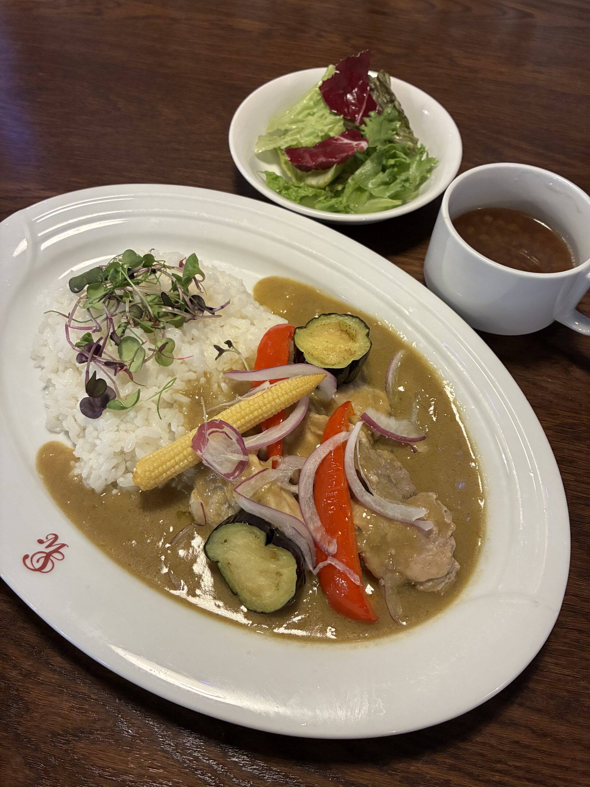お知らせ お知らせ ランチ ランチ 10月23日(木)本日のランチ 2025年10月23日10時40分 本日のランチ チキングリーンカレー サラダ付き はこれ! 45食限定! ランチオプションデザートは アセロラケーキ(¥360)です。 明日のランチは 豚の和風しょうが焼き です。 お楽しみに😊😊😊