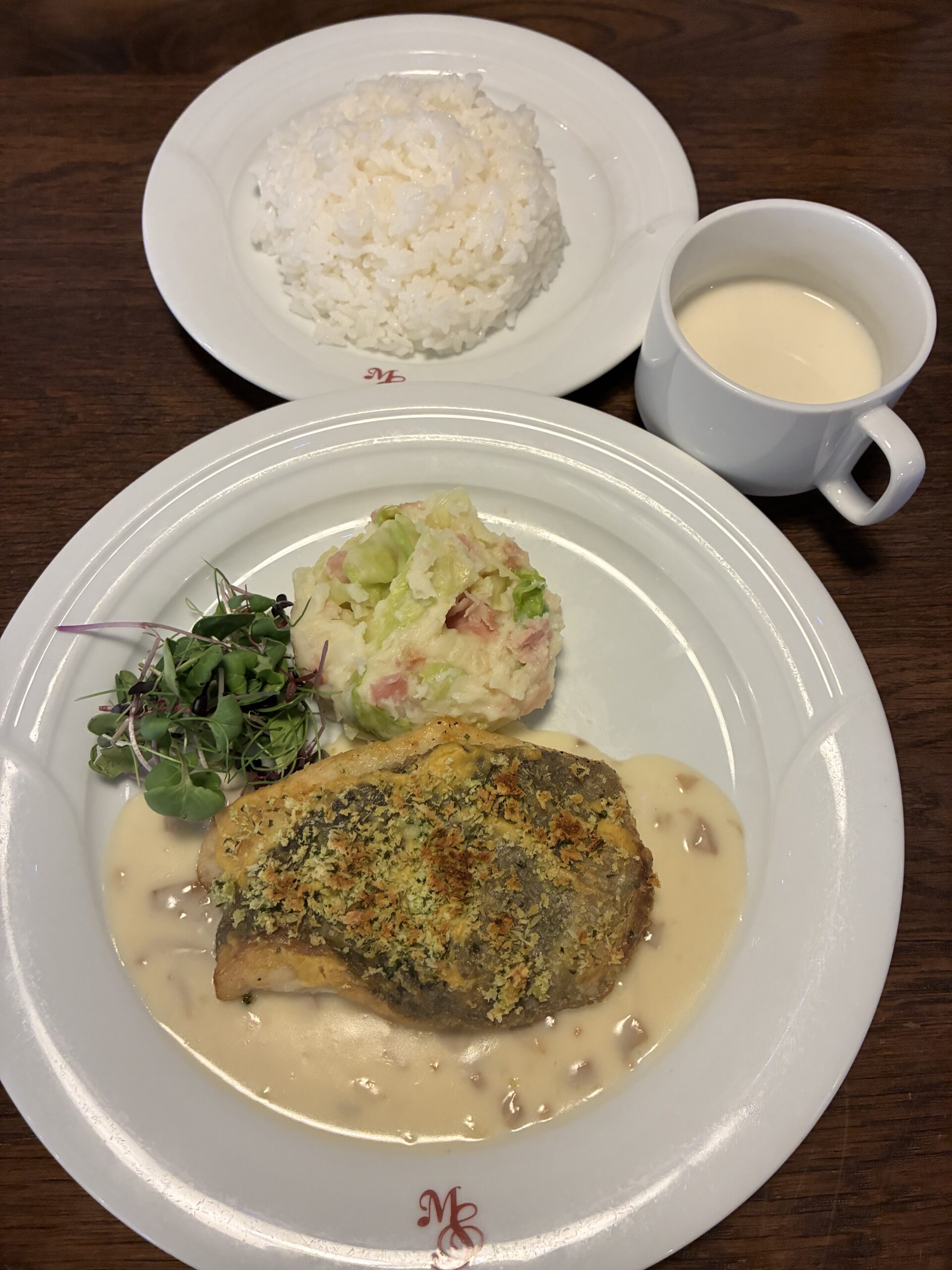 お知らせ お知らせ ランチ ランチ 11月6日(木)本日のランチ 2025年11月06日10時47分 本日のランチ マトウ鯛の香草パン粉焼き はこれ! 45食限定! ランチオプションデザートは チョコレートロールケーキ(¥360) です。 明日のランチは 鶏もも肉のガーリックチーズ焼き です。 お楽しみに😊😊😊 共有:シェアFacebookTwitter