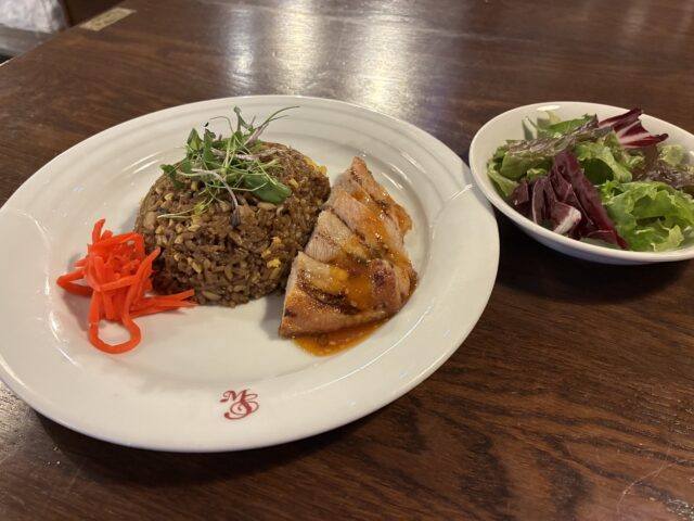 お知らせ お知らせ ランチ ランチ 11/13(木)今日のランチ 2025年11月13日11時03分 黒炒飯山形豚トントログリル添え はこれ! 45食限定! ランチオプションデザートは アセロラケーキ(¥360) です。 明日のランチは ミックスフライ です。 お楽しみに😊😊😊 共有:シェアFacebookTwitter