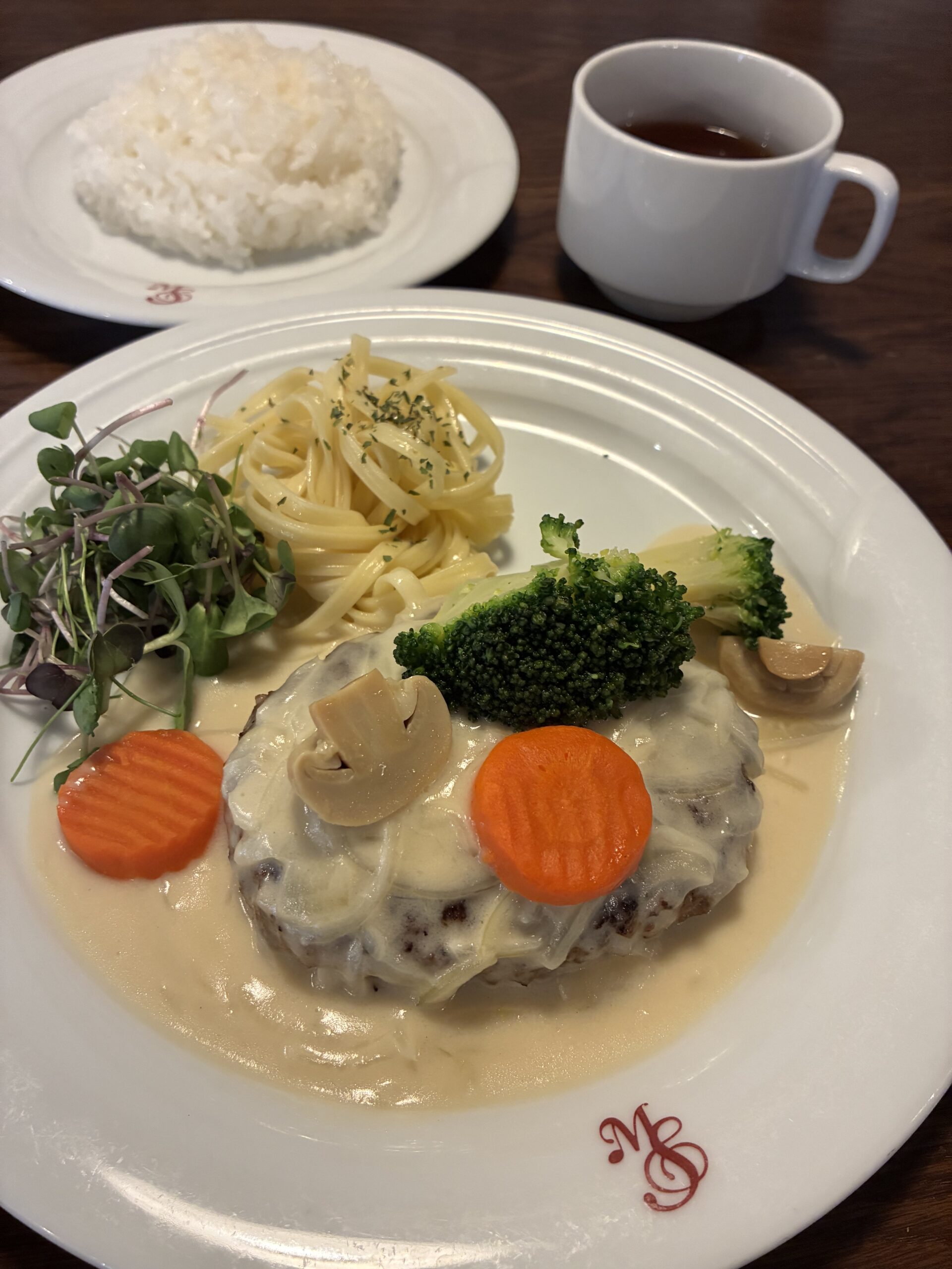 お知らせ お知らせ ランチ ランチ 11月15日(土)本日のランチ 2025年11月15日10時46分 本日のランチ ハンバーグ クリームソース はこれ! 45食限定! ランチオプションデザートは ガトーショコラ(¥360) です。 明日のランチは ガーリックライス牛ポアレ添え サラダ付 です。 お楽しみに😊😊😊 共有:シェアFacebookTwitter