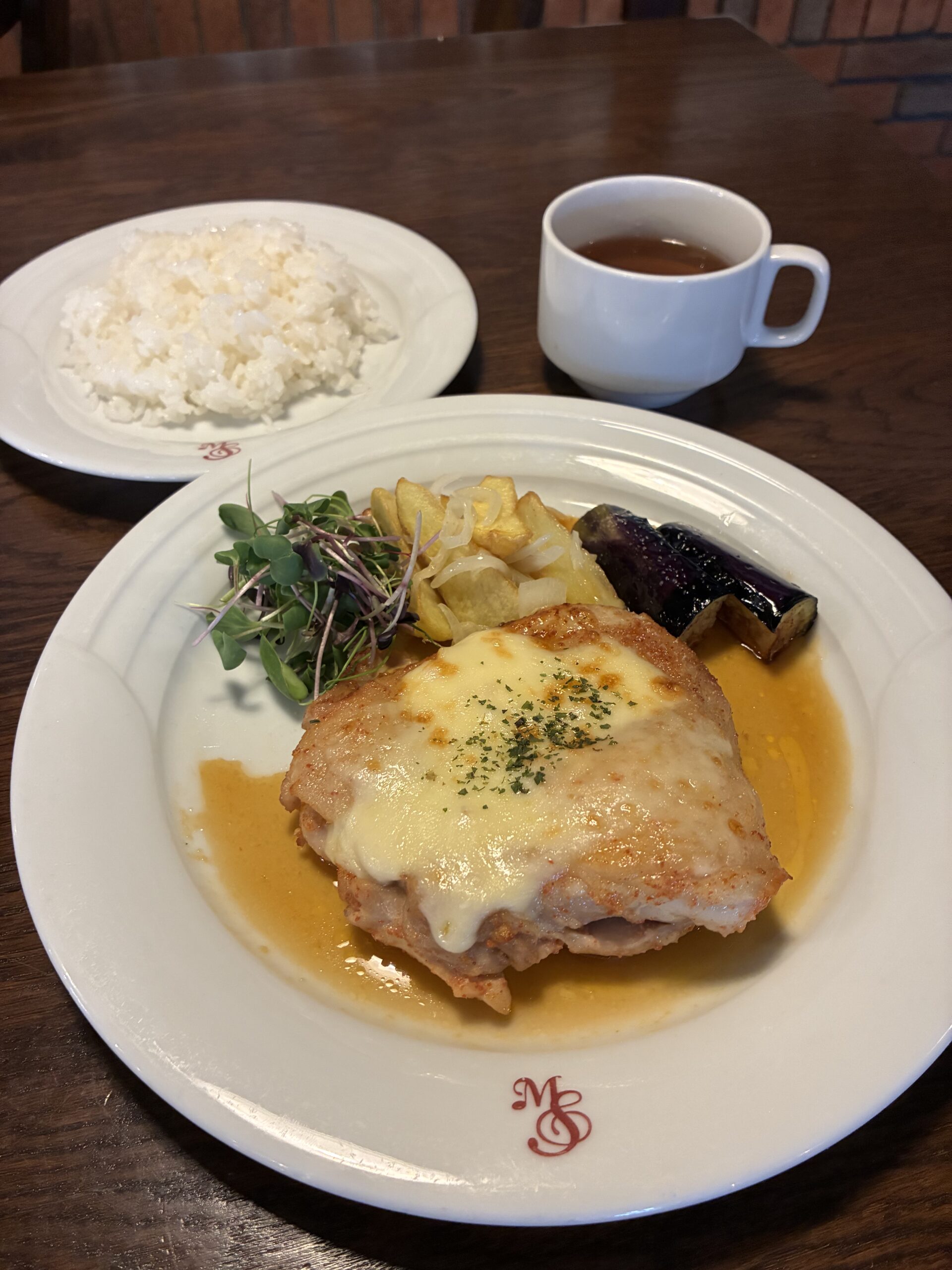 お知らせ お知らせ ランチ ランチ 11月19日(水)本日のランチ 2025年11月19日10時55分 本日のランチ 鶏もも肉の明太チーズ焼き はこれ! 45食限定! ランチオプションデザートは マロンケーキ(¥360) です。 明日のランチは スズキのムニエル アメリケーヌソース です。 お楽しみに😊😊😊 共有:シェアFacebookTwitter