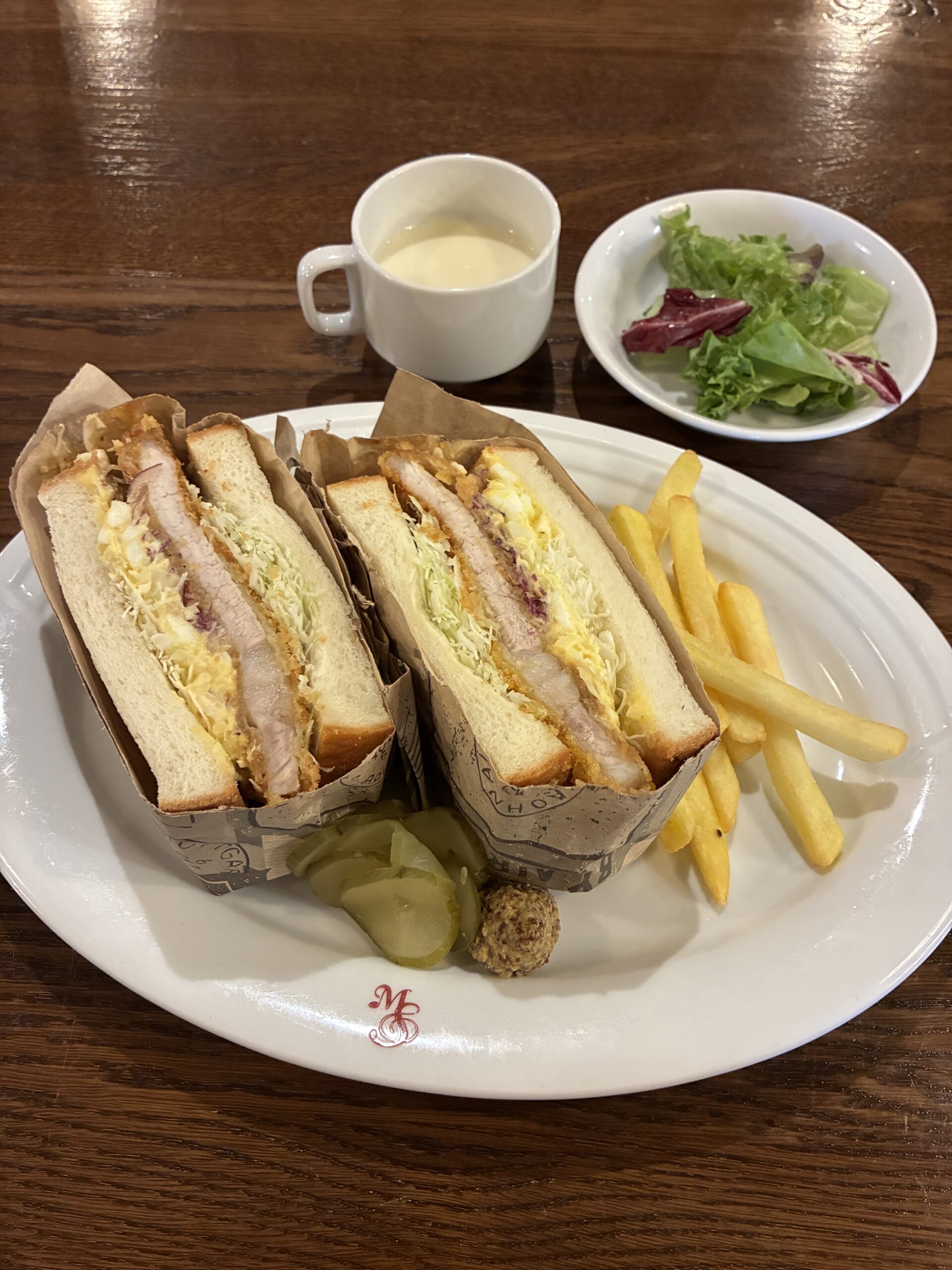 お知らせ お知らせ ランチ ランチ 11月30日(日)本日のランチ 2025年11月30日11時04分 本日のランチ 玉子サラダ入りポークカツサンド サラダ付き はこれ! 45食限定! ランチオプションデザートは レアチーズケーキ(¥360) です。 明後日のランチは シーフード塩焼きそば サラダ付き です! お楽しみに😊
