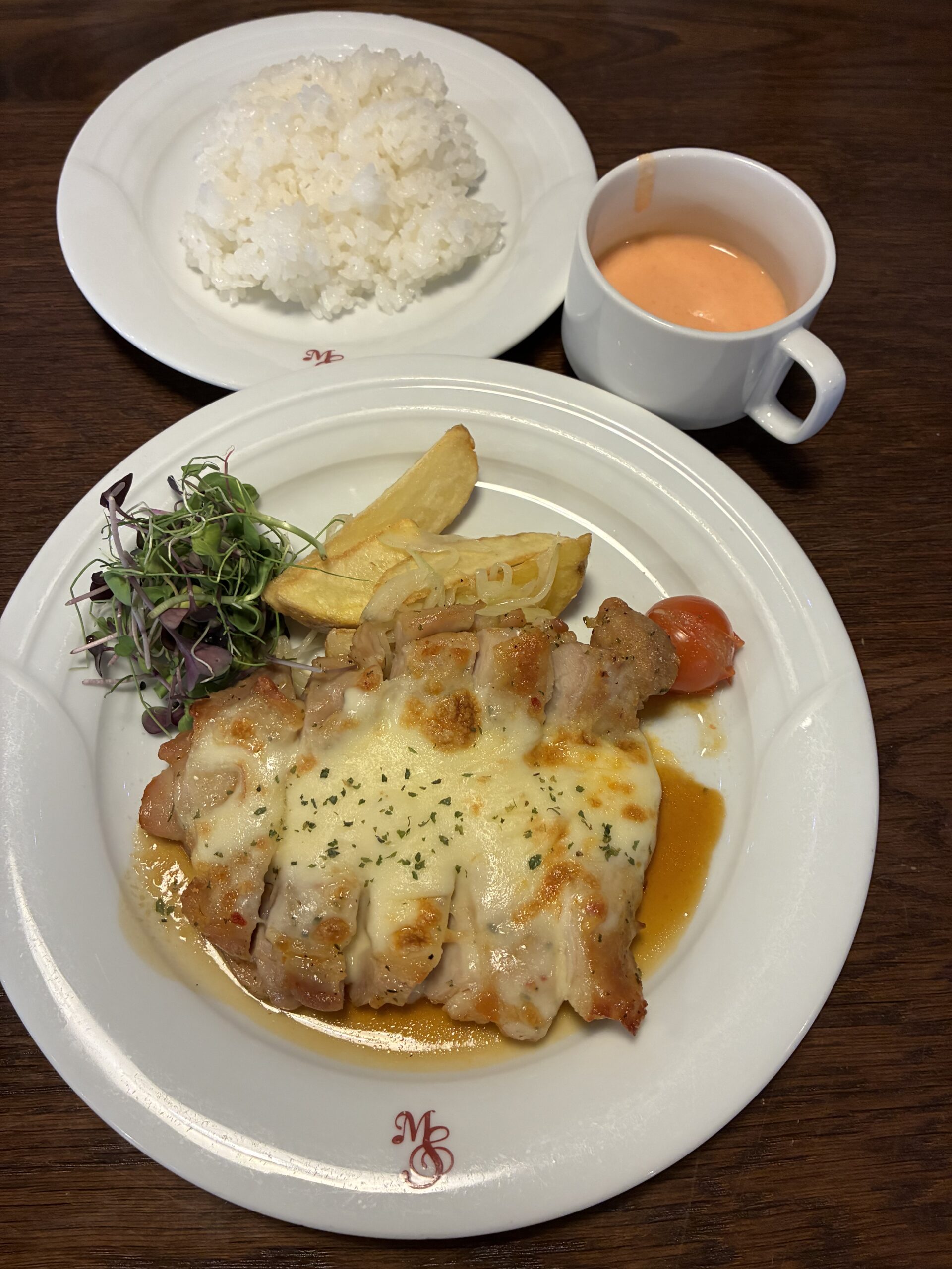 お知らせ お知らせ ランチ ランチ 2月5日(木)本日のランチ 2026年02月05日10時43分 本日のランチ 鶏もも肉のガーリックチーズ焼き はこれ! 45食限定! ランチオプションデザート バスクチーズケーキ(¥360)です。 明日のランチは ポークカツデミグラスソース です! お楽しみに♪