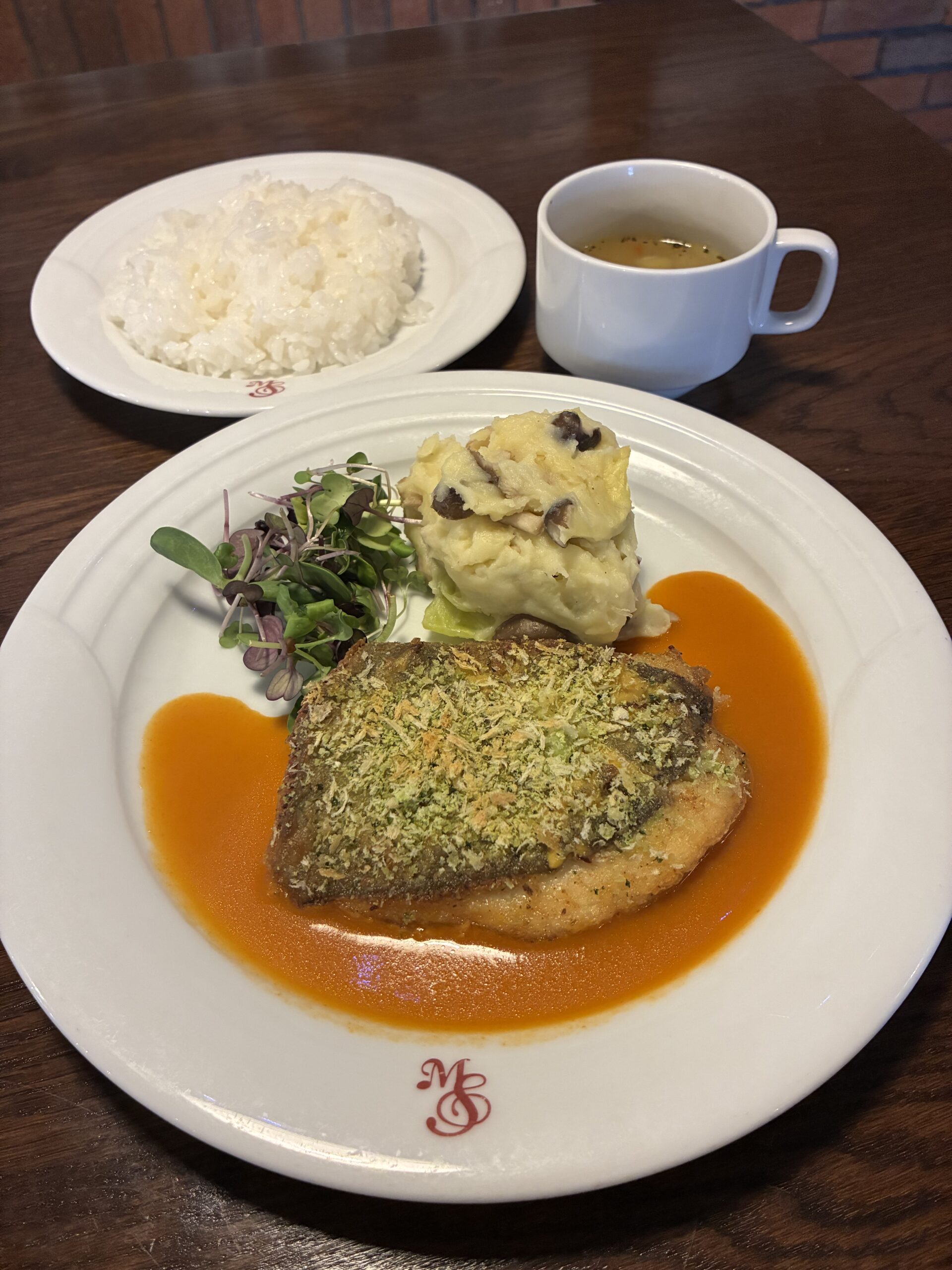 お知らせ お知らせ ランチ ランチ 2月18日(水)本日のランチ 2026年02月18日10時48分 本日のランチ マトウ鯛の香草パン粉焼き はこれ! 45食限定! ランチオプションデザート バスクチーズケーキ(¥360)です。 明日のランチは ガーリックライスと牛ポアレ サラダ付き です! お楽しみに♪