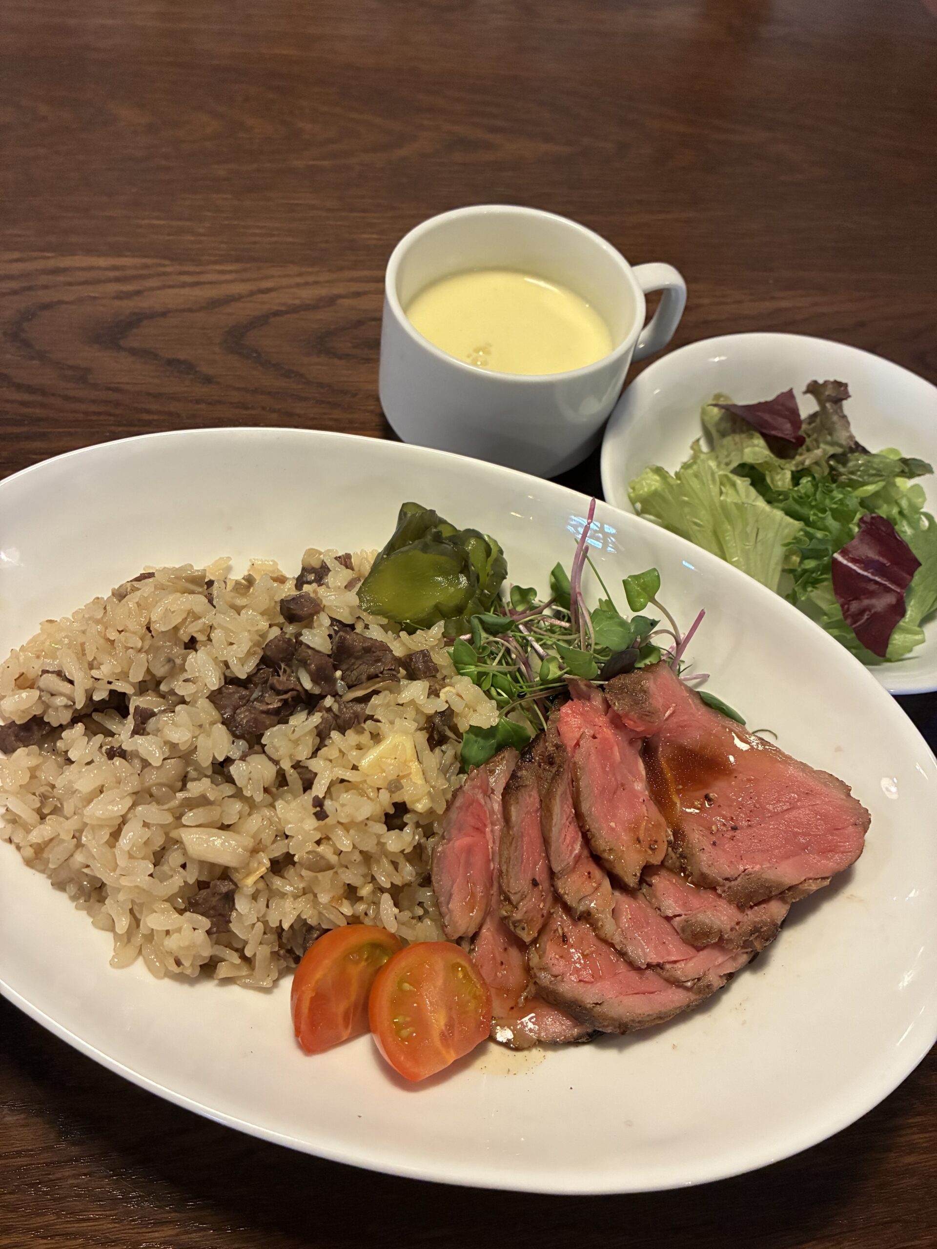 お知らせ お知らせ ランチ ランチ 2月19日(木)本日のランチ! 2026年02月19日10時45分 本日のランチ ガーリックライスと牛ポアレ サラダ付き はこれ! 45食限定! ランチオプションデザート バスクチーズケーキ(¥360)です。 明日のランチは タルタルたっぷりチキン南蛮 です! お楽しみに♪