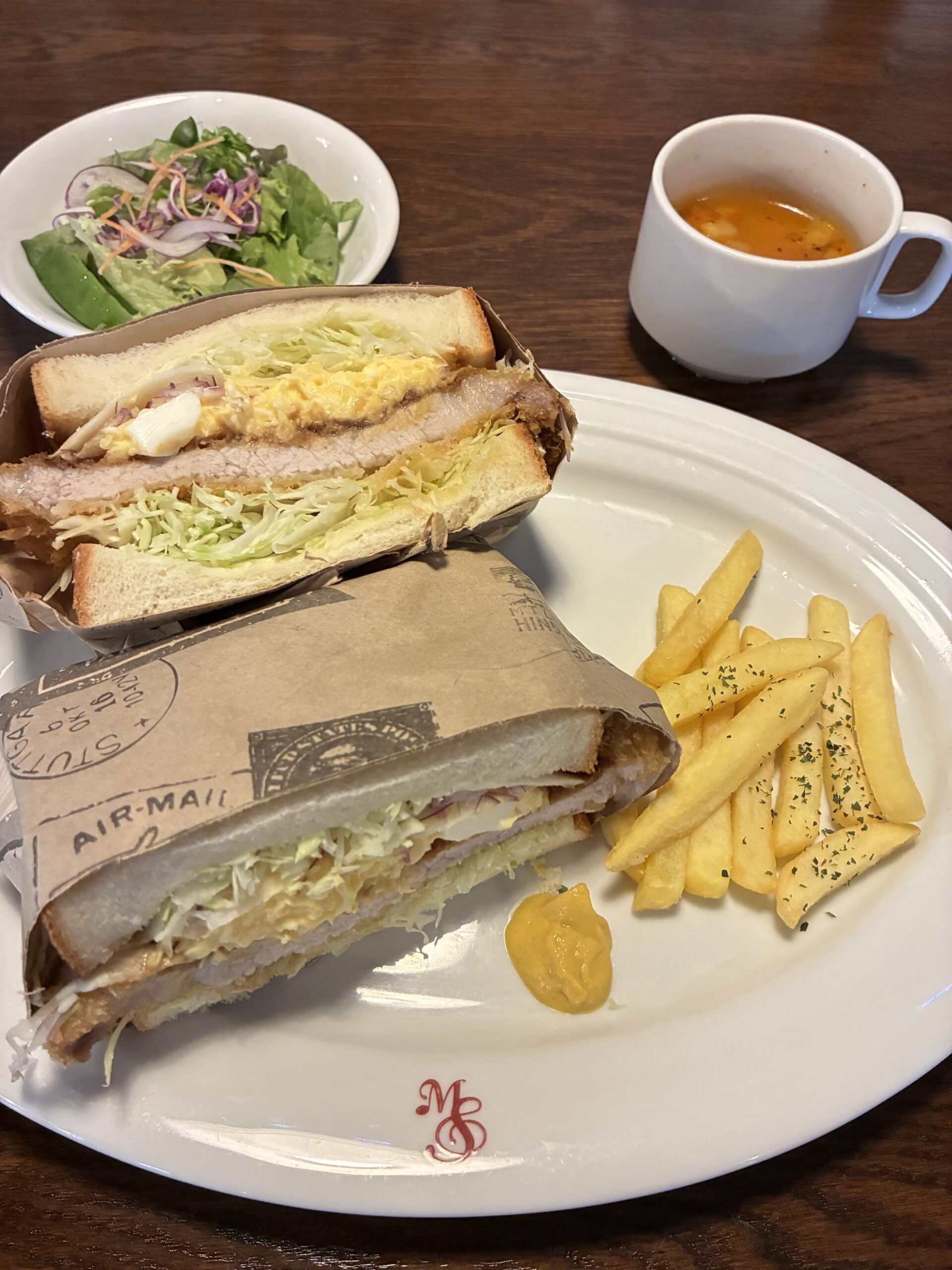 お知らせ お知らせ ランチ ランチ 2月28日(土)本日のランチ 2026年02月28日10時49分 本日のランチ 玉子サラダ入りポークカツサンド サラダ付き はこれ! 45食限定! ランチオプションデザート ガトーショコラ(¥360)です。 明日のランチは チー玉チキンライス サラダ付き です! お楽しみに♪
