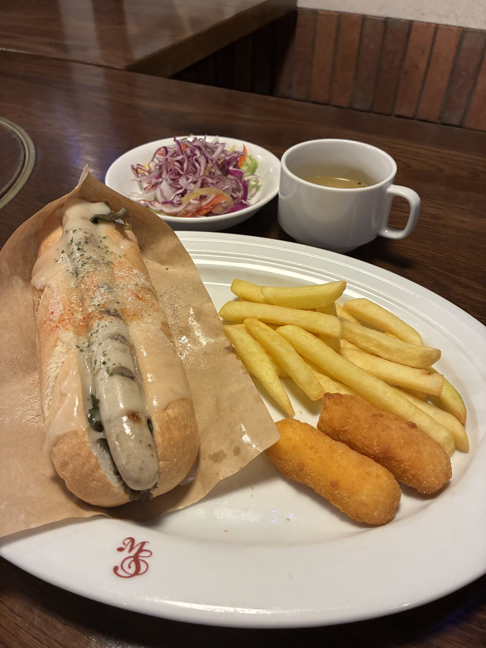 お知らせ お知らせ ランチ ランチ 3月31日(火)本日のランチ 2026年03月31日10時55分 本日のランチ ベシャメルソースのホットドッグ サラダ付きはこれ ! 40食限定! ランチオプションデザートは サワーチェリーケーキ(¥360)です。 明日のランチは ソーセージ入りミートソーススパゲティ サラダ付き です! お楽しみに☺️