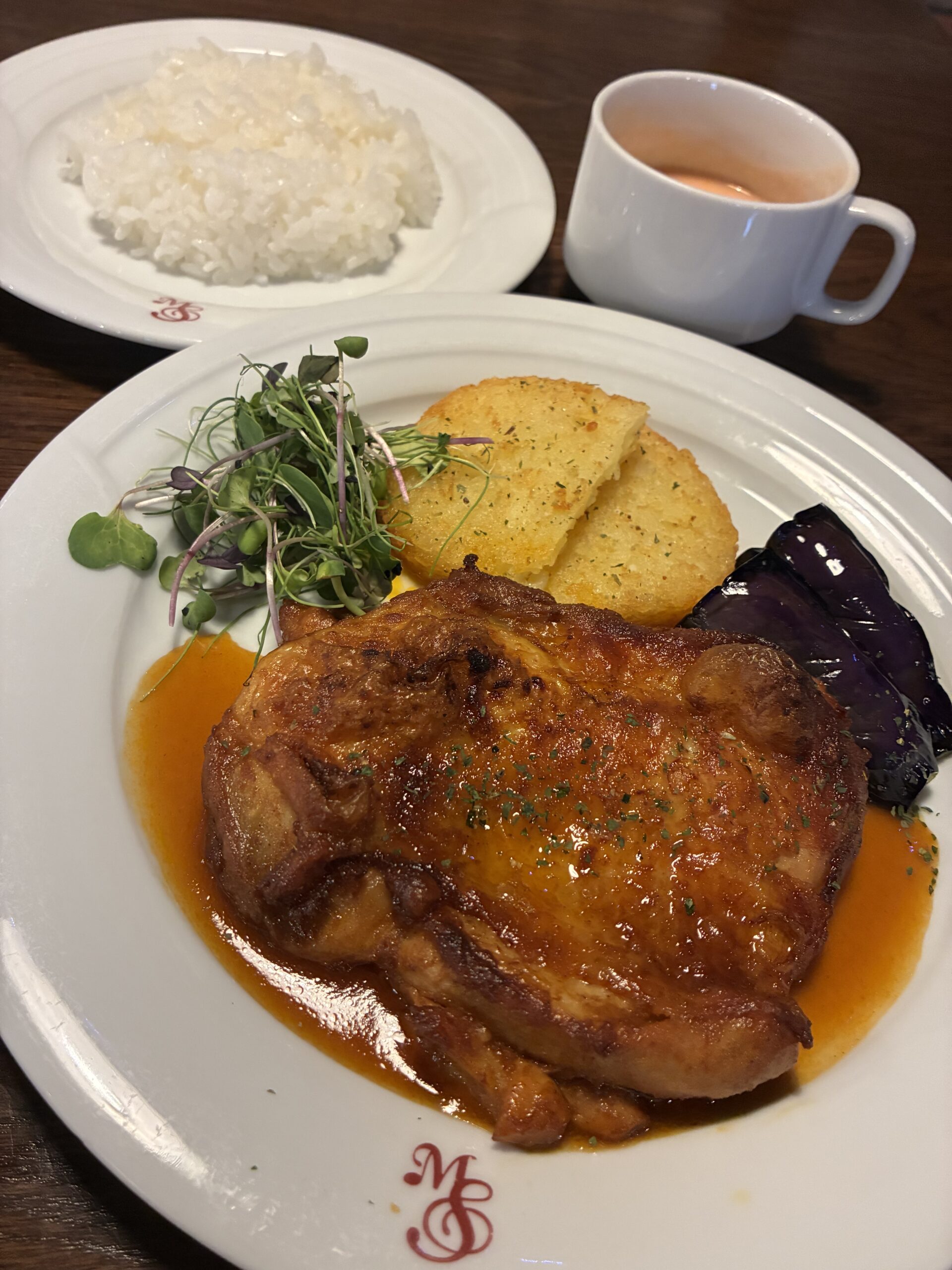 お知らせ お知らせ ランチ ランチ 4月7日(火)のランチ 2026年04月07日10時58分 本日のランチ タンドリーチキンはこれ ! 45食限定! ランチオプションデザートは 自家製プリン(¥360)です。 明日のランチは黒炒飯豚カルビ添えサラダ付き です。 お楽しみに☺️
